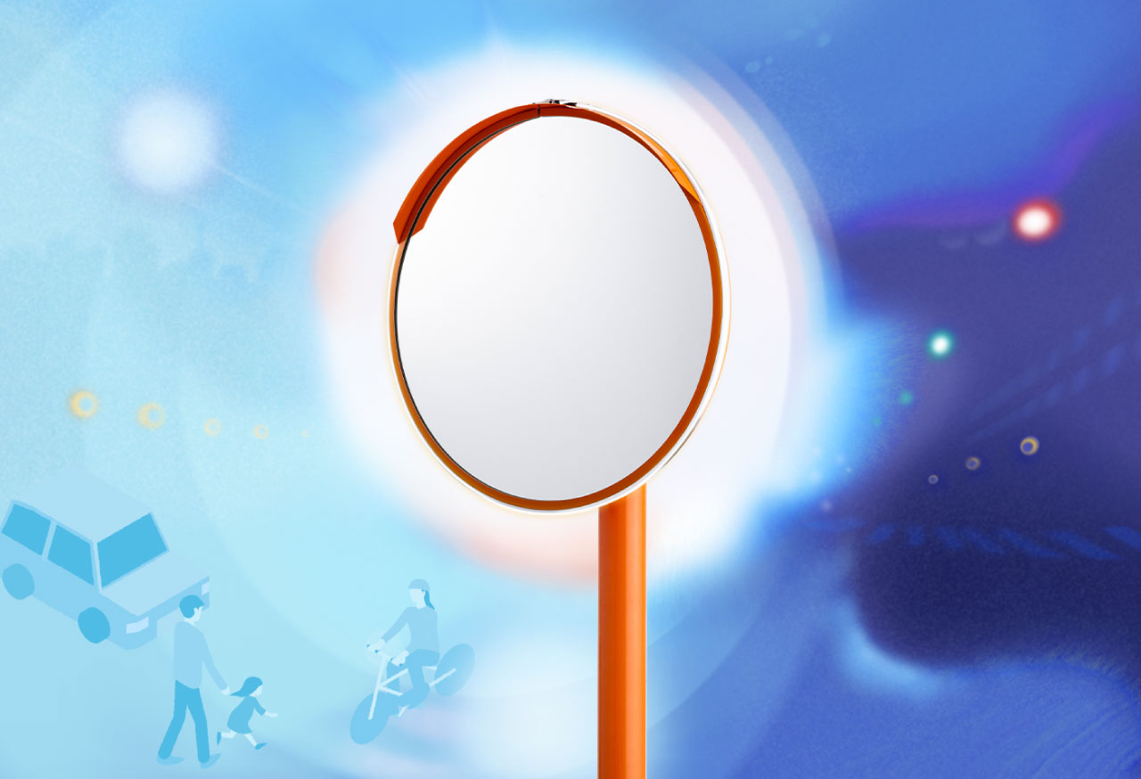 村上開明堂は、自動車用ミラー製品で国内トップシェアを誇る、ミラーシステム・オプトロニクス製品の専門メーカーです。『光るカーブミラー』は、当社が自動車用ミラーの開発で培った技術とノウハウを背景に、企業ビジョンである「みえる安心があなたをもっとアクティブにする」を通じて交通事故ゼロを実現したいという想いを込めて開発しました。