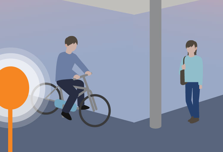 交差点に進入する車やバイク、人物を感知。見落としがちな死角からの接近を捉えます。Features02