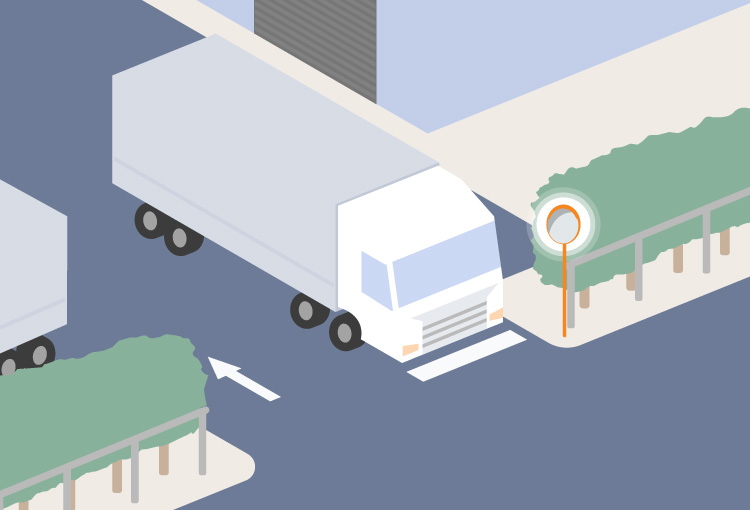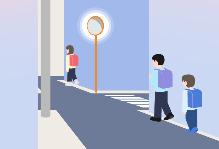 工場や駐車場内の死角、通学路の交差点などの生活空間の危険を、光でお知らせ。