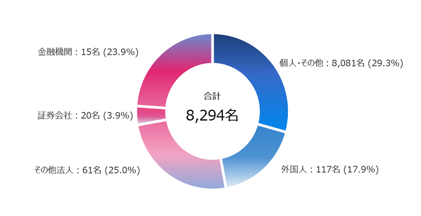 - ( )内の数値およびグラフは所有株式数の構成比率を表しています。
